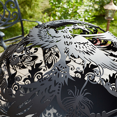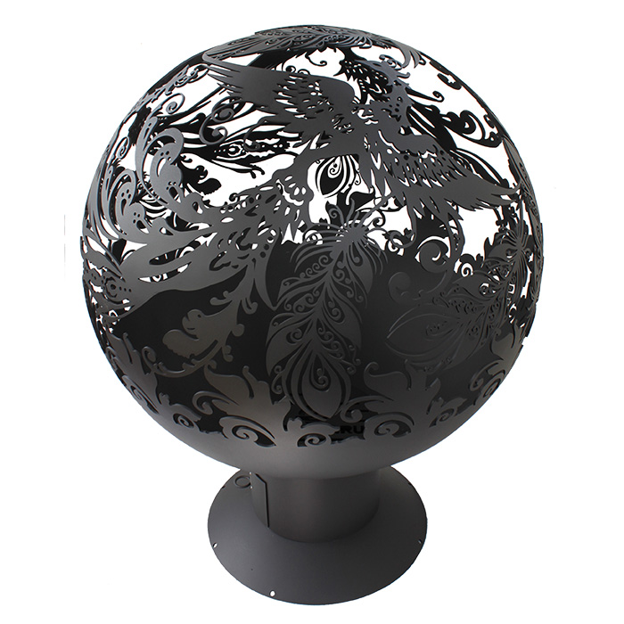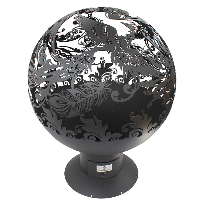 Уличный очаг Жар-птица Firecup представляет собой сферу из металла, на которой вырезана жар-птица руками профессионального мастера. Через многочисленные прорези просвечивает пламя, озаряя все вокруг. Несмотря на уникальный дизайн, кострище отлично вписывается в любую обстановку как во дворе, так и на природе.