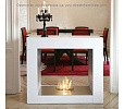 Благодаря применению отопительного блока фирменной конструкции, открытое пламя биокамина достаточно безопасно. Однако, при желании, открытое пламя можно прикрыть с двух сторон приставным огнеупорным стеклом