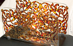 Модель «Самурай» может быть выполнена с витражными стеклами. В этом случае композиционный акцент модели смещается на цветной узор росписи, а пламя или свет, проходящий сквозь стекла биокамина подсвечивают созданный орнамент.