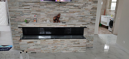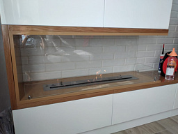 Монтаж торцевой разновидности имеет преимущество – можно выбрать вариант с огненной линией во всю ширину перегородки. И для этого можно смело не оставлять по бокам пространство, чтобы защитить и изолировать корпус. Обусловлено это тем, что торцы у данных разновидностей имеют защиту в виде огнеупорного стекла.