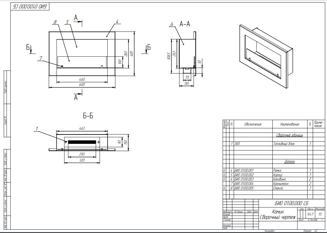 - Тип биокамина встраиваемый