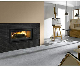 - Компактная, вытянутая по горизонтали, конструкция не будет визуально «опускать» потолок, как это нередко случается с крупноразмерными экокаминами.