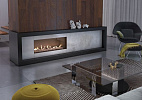 - Беспрепятственное созерцание огня благодаря невидимой рамке фасада и минимальному количеству видимых стальных элементов.