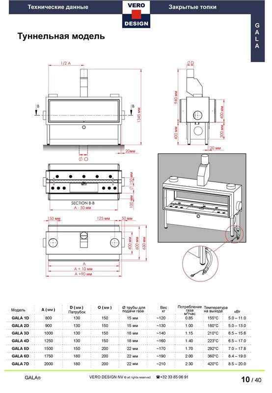 Газовый камин Vero Design Gala GA 8D – туннельная (сквозная) модель с горизонтальными окнами из стекла с двух противоположных сторон. Топка работает от природного газа бутан или баллонного газа пропан, что позволяет устанавливать камин не только в загородном доме, но и в городской квартире. Выражает актуальные на сегодняшний день веяния в создании интерьеров в стиле хай-тек.