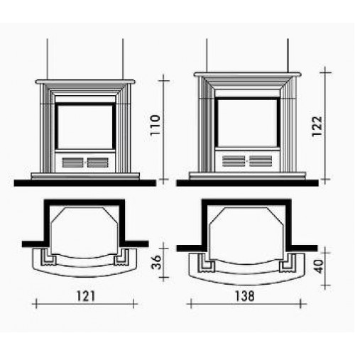 Адаптированные топки: Plus и Ter F, Forte (размер облицовки 138х40х122 см.).