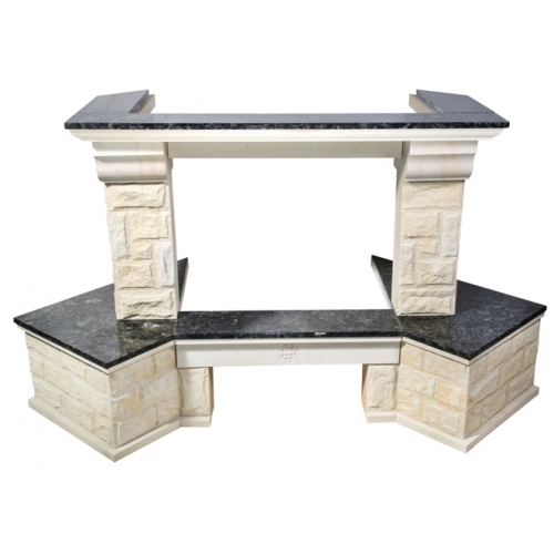 - Материал: колотый песчаник, золотистый цвет, полки и балка - LabradoriteПодходящие топки шириной „700 мм” с прямым стеклом