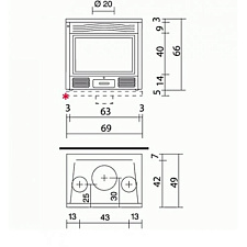 • Внутренние размеры топки, см 74x61x55h