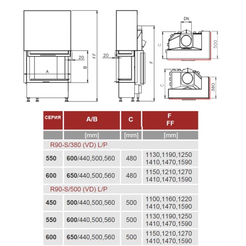 Каминная топка Kobok Corner 650 VD R90-S/380 L/P