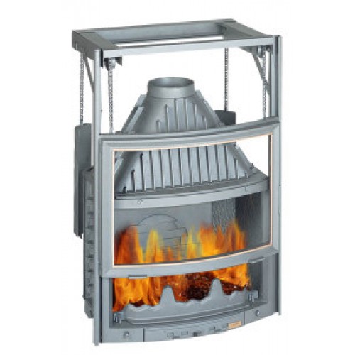 Овальная форма стекла, выдвижной зольный ящик. Вертикальное и боковое открывание, система подъема двери при помощи контргруза. Латунная рамка.
