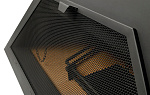 Фронтальный камин со стеклом. Вертикальная труба справа. Камин изготовлен из особой стали. Отделан огнеупорной черной краской, которая выдерживает температуру 650º.