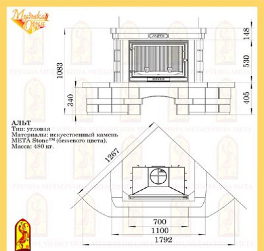 Так же, к данной облицовке, подходят топки других производителей, ширина фасада которых не превышает 692 мм. Топки с подъемным механизмом (открывание дверцы вверх) - не подходят.