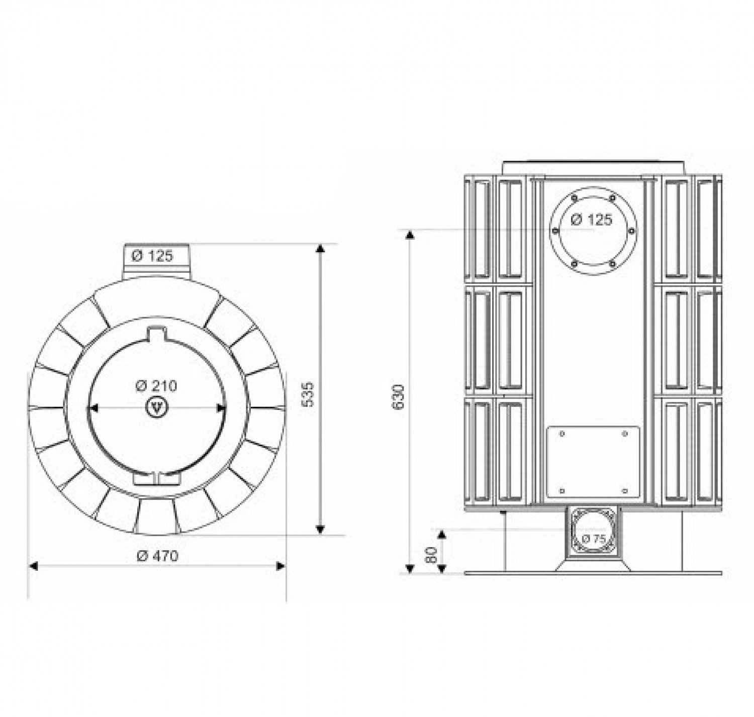• Диаметр дымохода, (мм)