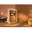 Угловая каминная топка с Г-образным стеклом. Боковое стекло справа. Топочная камера футерована шамотом. Подъёмный механизм двери (система Easy-Lift). Ширина дверки 802+302 мм. Высота дверки 353 мм. Возможно подключение воздуха извне.