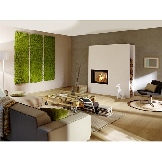Стальная каминная топка с прямым стеклом. Дверца с боковым открыванием. Ширина дверки 656 мм. Высота дверки 488 мм. Возможно подключение воздуха извне.
