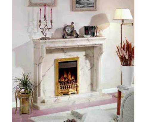 Этот изысканный портал изготовлен из необычного узорчатого мрамора. Плавные изгибы колонн делают эту модель еще более изящной и компактной.