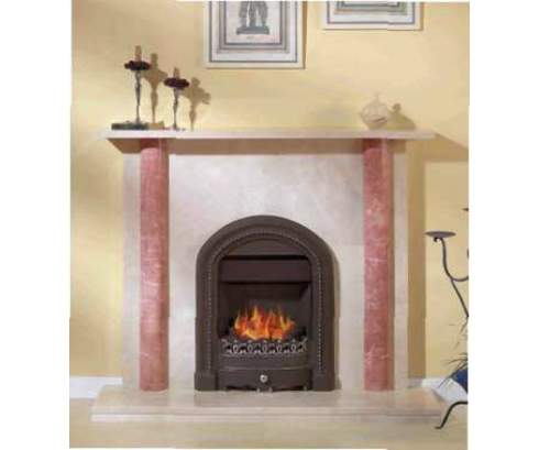 Эта модель от испанской фирмы Crumar проста как и все гениальное. Идеально гладкие поверхности основания и верхней полки, стройные колонны по бокам от топки и нежно-розовый мрамор фасада делают этот камин необычайно красивым.