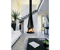 Основание очага может располагаться на двух разных высотах по отношению к полу, а также может быть приподнято на специальной стальной подставке (дополнительная опция). Застекленные дверцы выполняют функцию искрогасителей.