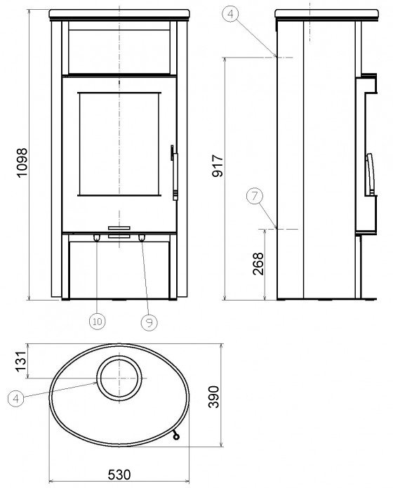- Диаметр дымохода, (мм) 150