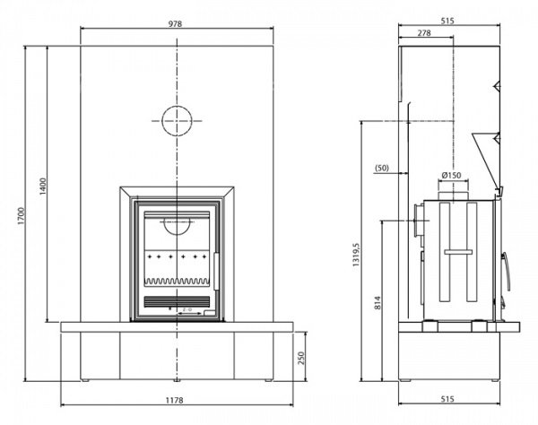 • Диаметр дымохода, (мм)