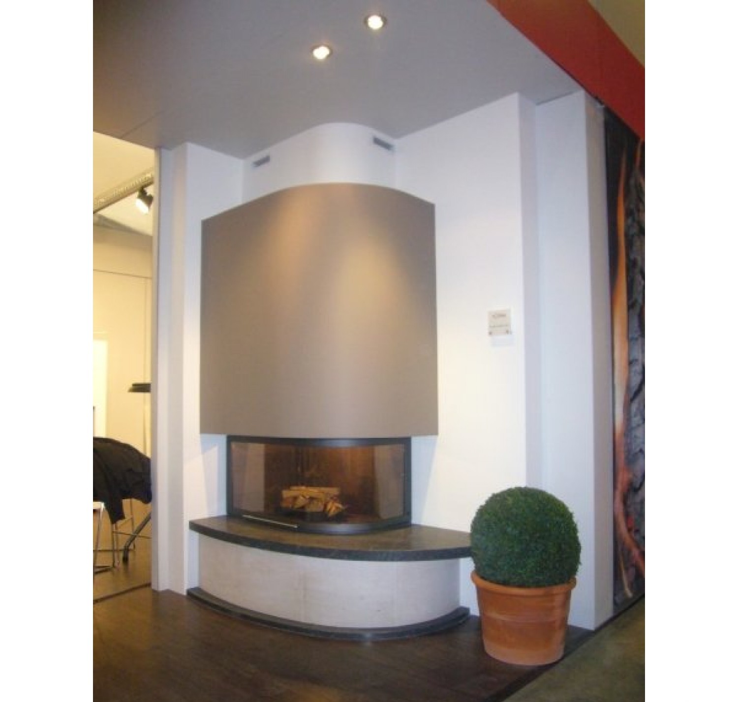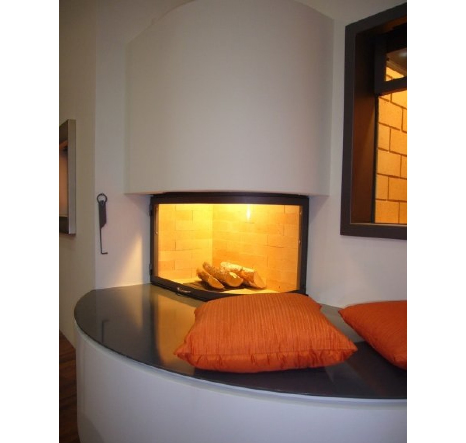 Топка Gable Lateral 900 - топка с угловым скругленным стеклом. Каркас топки выполнен из легированной стали. Очаговая зона выложена высокопрочным огнеупорным кирпичом со швами. Ширина очага 770 мм, глубина очага 367 мм. Высота видимой части пламени 460 мм. Очаг выложен маленькими кирпичными блоками со швами. Размер блока 55х220 мм. Подъемная ручка двери изогнутая 12 см.