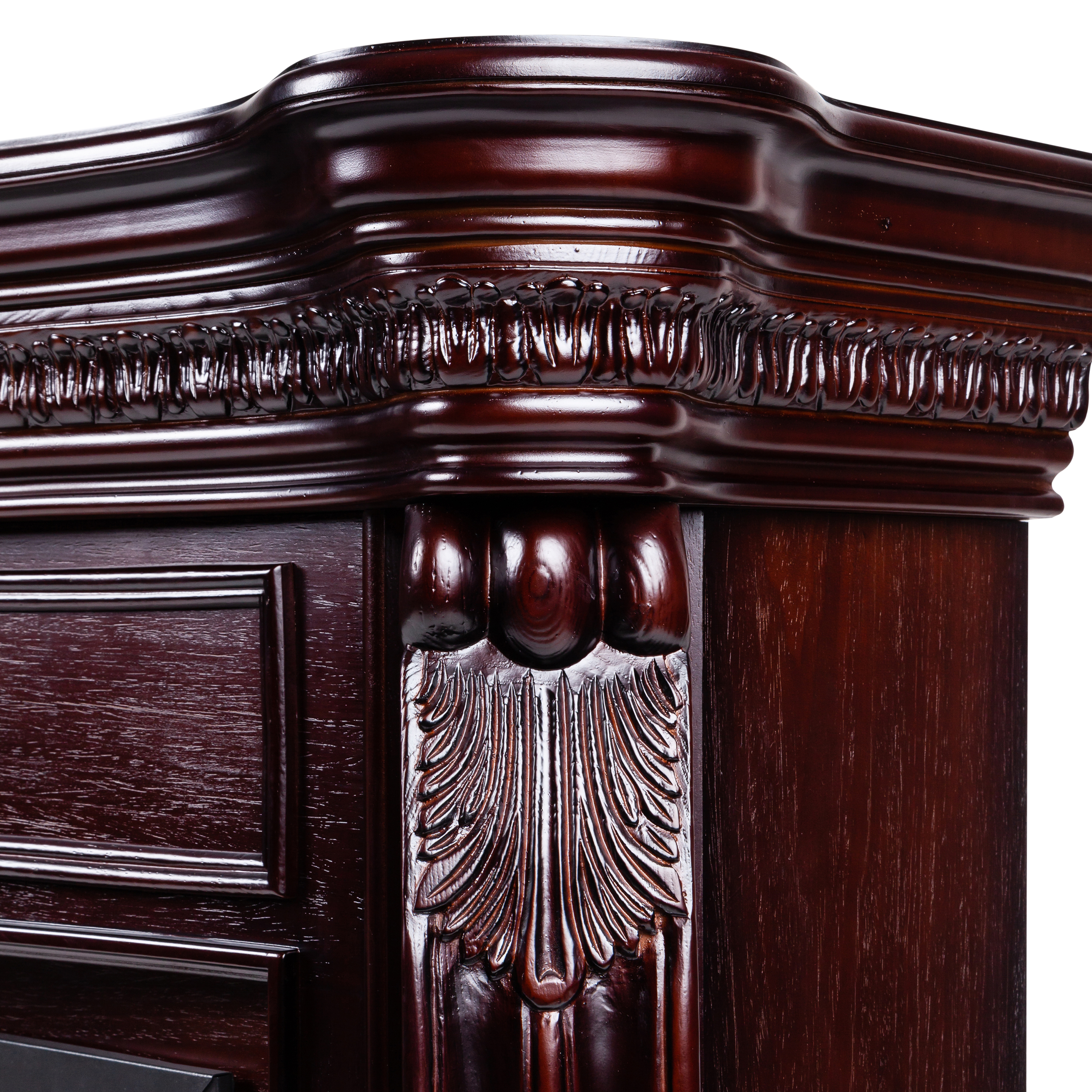• Выполнен из качественного МДФ и тонированного шпона. Украшен резьбой по дереву и колоннами.