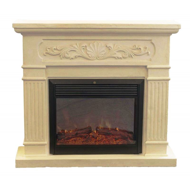 - Портал станет ярким акцентом современного интерьера, благодаря лаконичности форм и оригинальности текстуры. Сдержанный дизайн обрамления с элементами замкового стиля подчеркивается природной фактурой под натуральный камень. Такой камин добавит в обстановку комнаты солидности, а светлый оттенок портала визуально не перегрузит пространство.