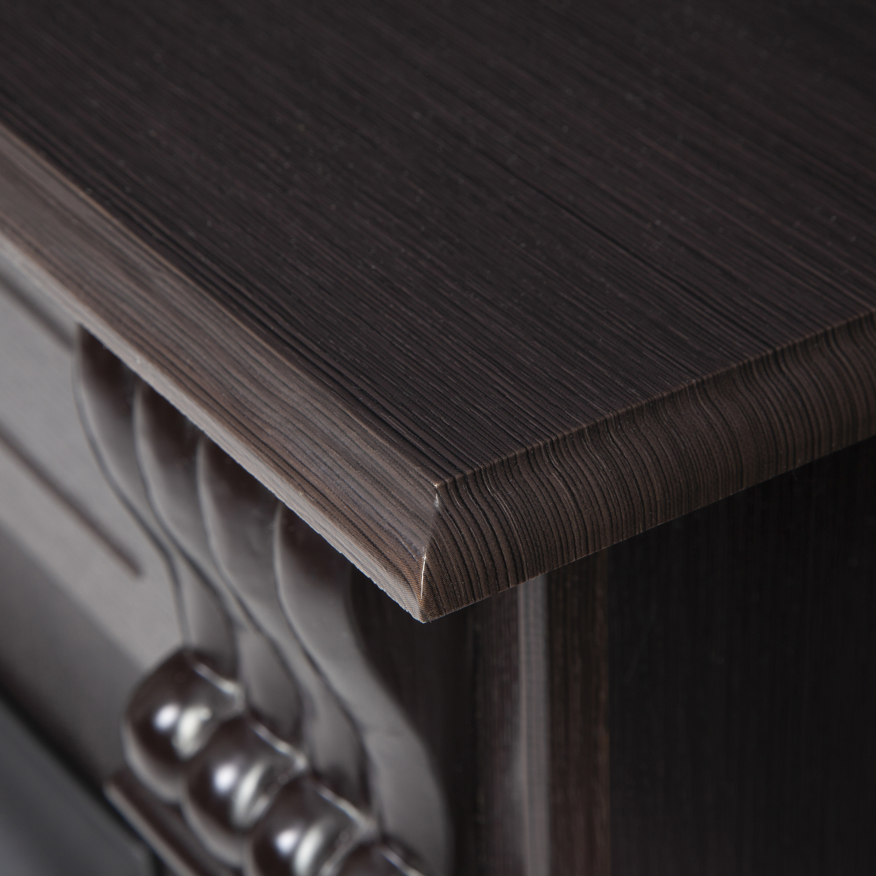 - Выполнен в высококачественном эко-шпоне. Компактное обрамление по бокам украшают объемные колонны, которые прекрасно сочетаются с центральным растительным декором.
