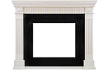 В обрамлении удачно сочетаются тонкие классические колонны, узкая столешница и невысокий пьедестал, за счет чего основным акцентом каминокомплекта становится широкий очаг.