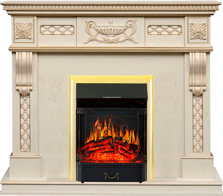 Каминокомплект Royal Flame Corsica с очагом Majestic FX Brass слоновая кость с патиной