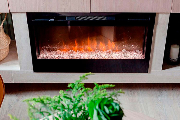Иногда в моделях используются шелковые лоскуты, изображение которых проецируется на заднюю панель камина, имитируя огонь.