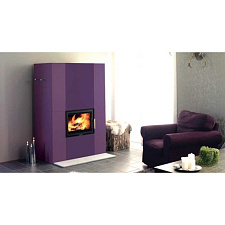 Модель представлена в нескольких вариантах, различающихся как по принципу установки (угловой или пристенный), так и цветовым решением облицовочного камня и деревянных элементов. Декорирована резными вставками в античном стиле.